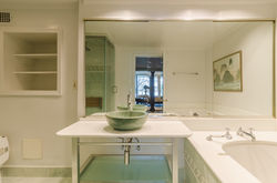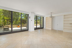 Newly installed floor-to-ceiling sliding glass opens to an approximate 1,100 SF patio/garden, complete with gas grill and planters. The private terrace leads to the riverfront garden, fountain, and heated pool.