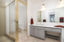 Bright spacious bedroom features dressing area with great closets. Primary bath with beautiful white counter, new fixtures, large soaking tub, and separate walk-in shower.