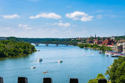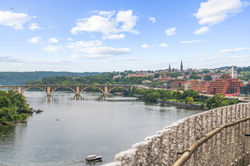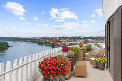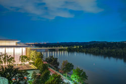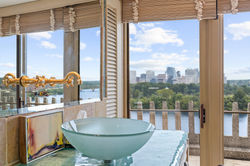Over 3000 sq. ft. interior. Over 120-ft long wrap around balcony, fantastic for entertaining. Live on top of the river with a view that spans 3 bridges, The Kennedy Center, Lincoln Memorial, Roosevelt Island and the Georgetown waterfront. Watch crew boats along the river at dawn and spectacular skies at sunset. A moving masterpiece! Floor to ceiling windows surround the dramatic interior with balcony access from every room.