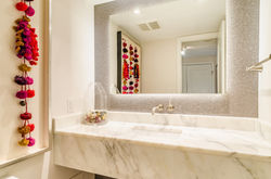 Large bedrooms, each with walk-in closets. Exquisite baths with Grohe fixtures, custom vanities, and marble countertops & floors. Luxurious master bath also features marble tile surround, walk-in shower with glass-enclosure, and soaking tub.