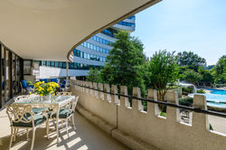 Expansive balcony—approximately 450 square feet—with views of the Potomac River, pool, gardens, and fountains.