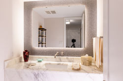 Large bedrooms, each with walk-in closets. Exquisite baths with Grohe fixtures, custom vanities, and marble countertops & floors. Luxurious master bath also features marble tile surround, walk-in shower with glass-enclosure, and soaking tub.