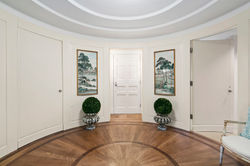 Dramatic circular entry leads to wide gallery and octagonal hall, with paneled walls & hidden closets throughout.