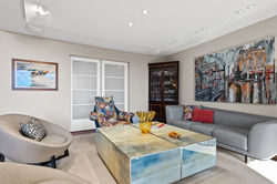 There are two bedrooms, each with full Spa baths with beautiful tiling, stone and appointments. Den offers limitless possibilities for a game room or fitness area. Hallway features a high glass interior window.