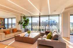 The stunning foyer leads you to the impeccable interior space - fantastic custom lighting, magnificent wood floors, and white oak millwork set the tone. Offering superior built-in and hidden storage, the floorplan is streamlined for uncluttered lifestyle.