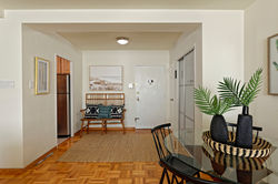 Potomac Plaza amenities include roof terrace, 24-hour front desk, exercise room, and community room. Guest parking available.
