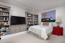 Huge second bedroom with built-in shelving & cabinetry. Large second bath with marble vanity.