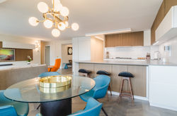 Kahrs chevron oak floors throughout. Entertainment wall, office built-ins, and closet systems custom made by Zampieri. Spacious open living room and separate dining area.